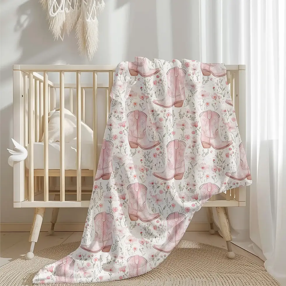 Girls Pink Western Cowboy Boot Nursery Blanket